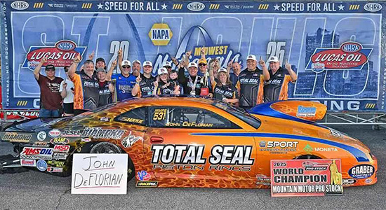 For nearly five decades, NHRA Mountain Motor Pro Stock standout John DeFlorian has dedicated his life to building and racing the fastest drag cars he can create. Based in Arnold, Mo., the 2025 NHRA Mountain Pro Stock world champion and Team AMSOIL member is known for his technical mastery and decorated racing career.